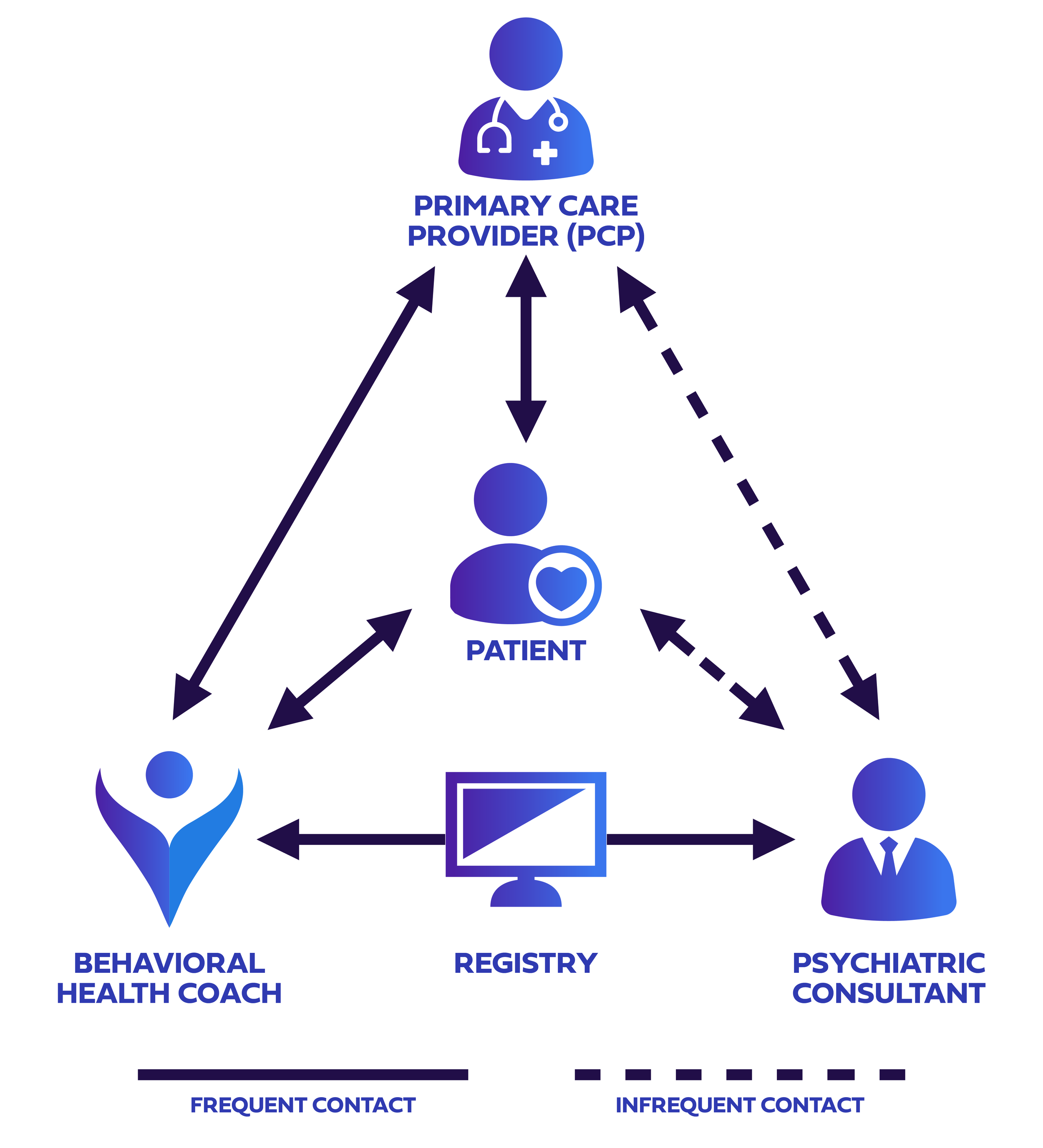 Care is based on the Collaborative Care Model (CoCM) and enhanced with evidence-based approaches developed by our clinical team. Board-Certified Health Coaches are trained in these models and supported by psychiatric consultation and clinical supervision.